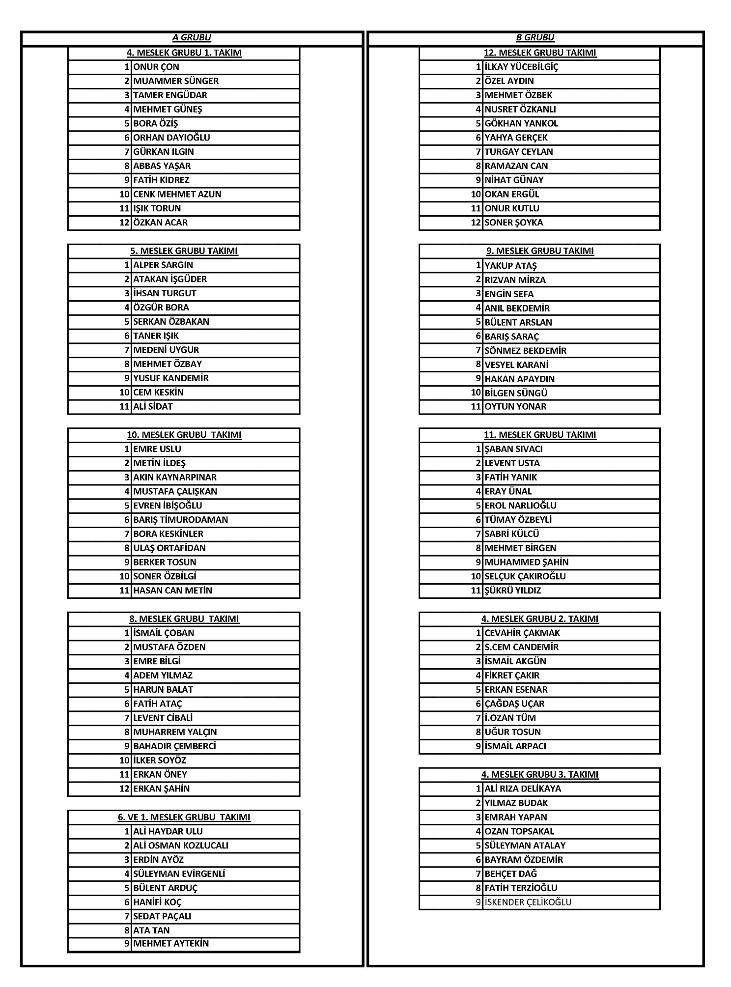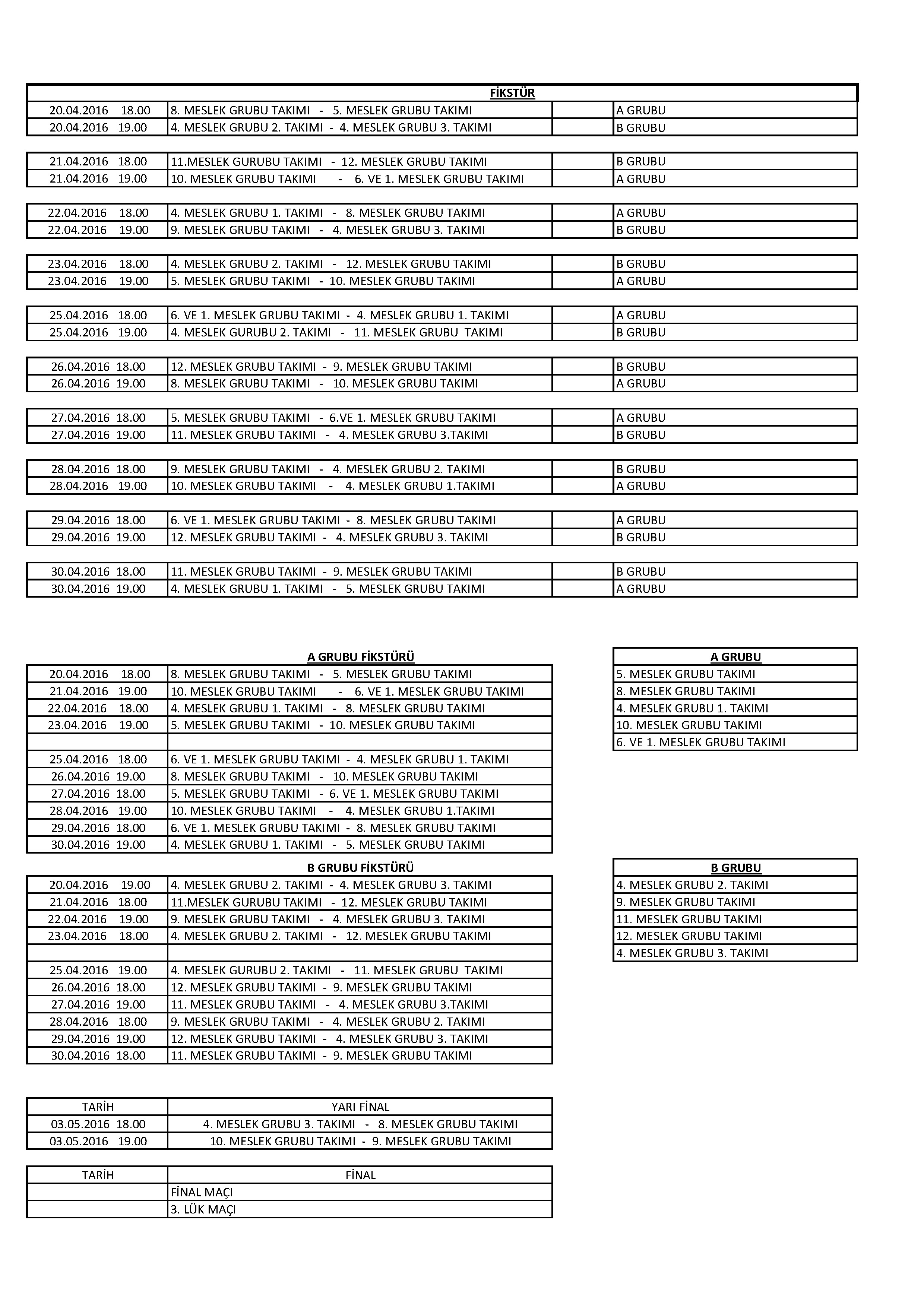 TÜM TAKIMLARA BAŞARILAR DİLERİZ.