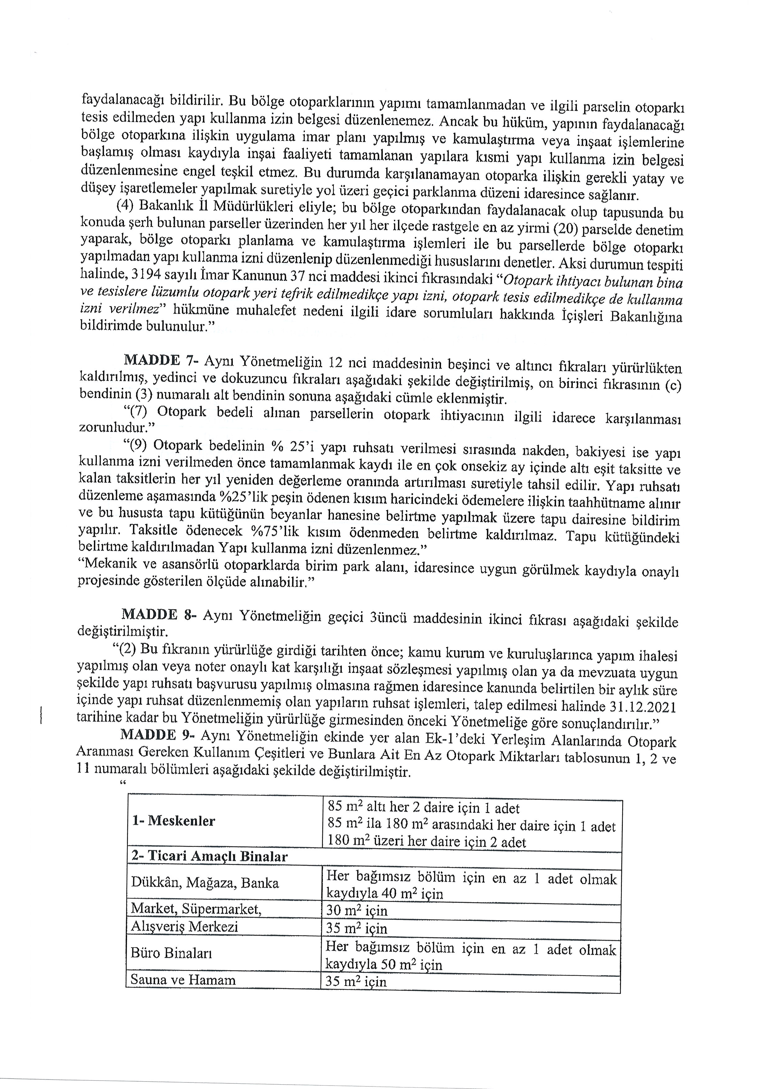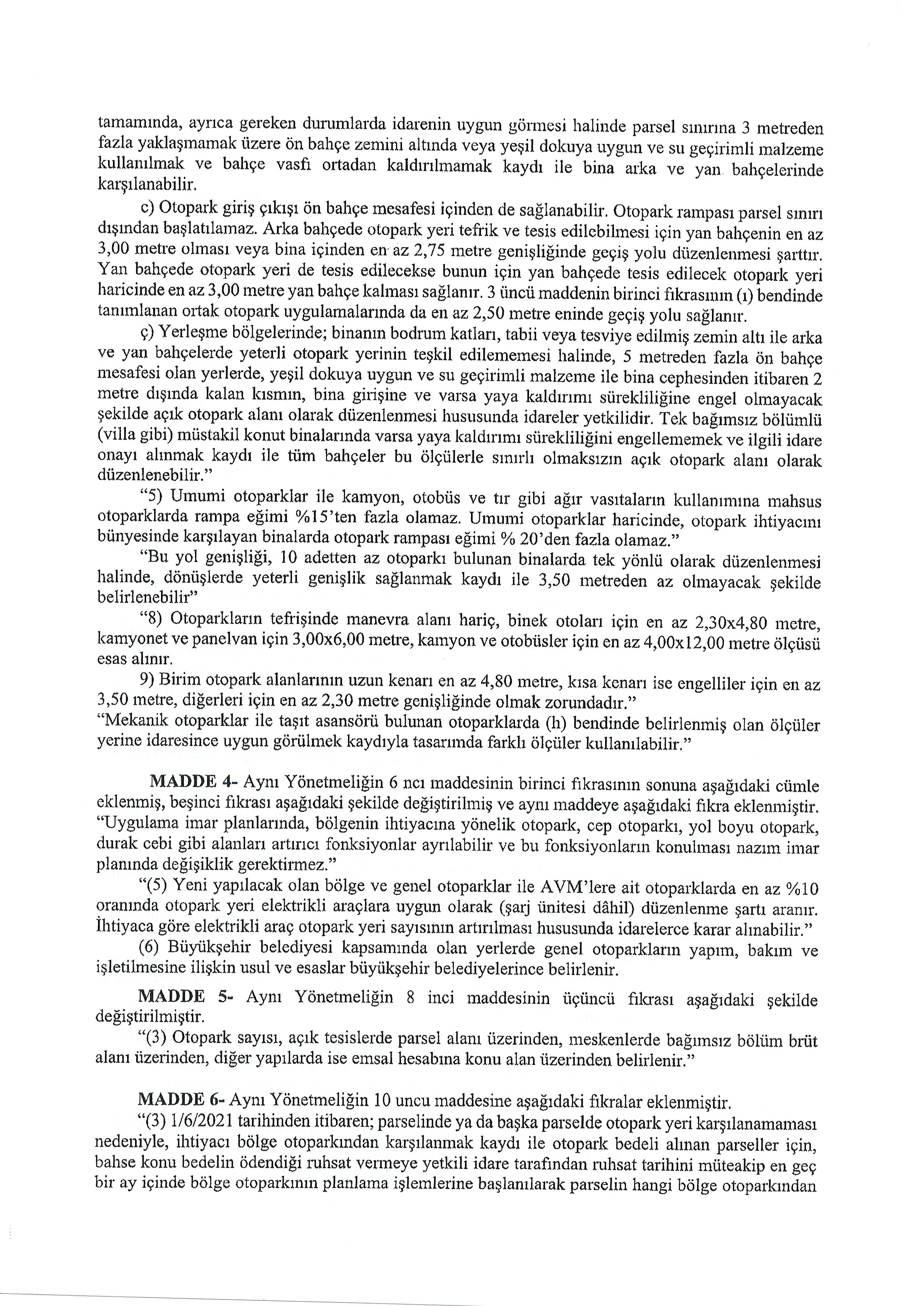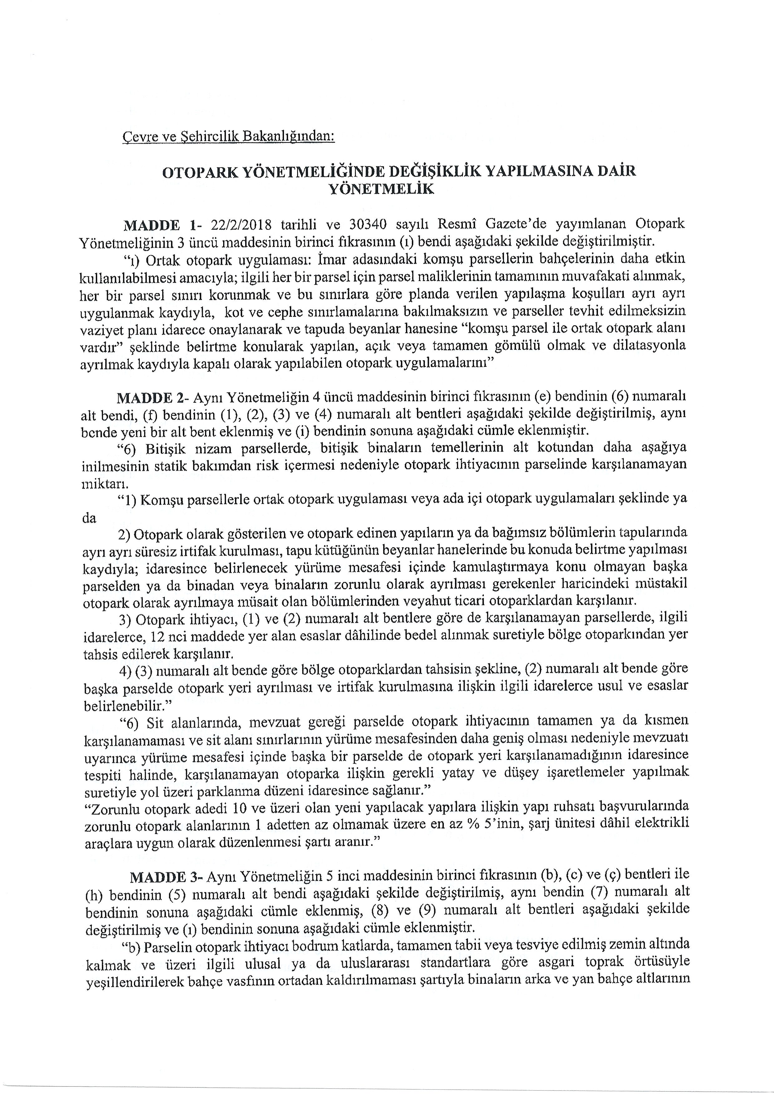 OTOPARK YÖNETMELİĞİNDE DEĞİŞİKLİK YAPILMASINA DAİR YÖNETMELİK TASLAĞI