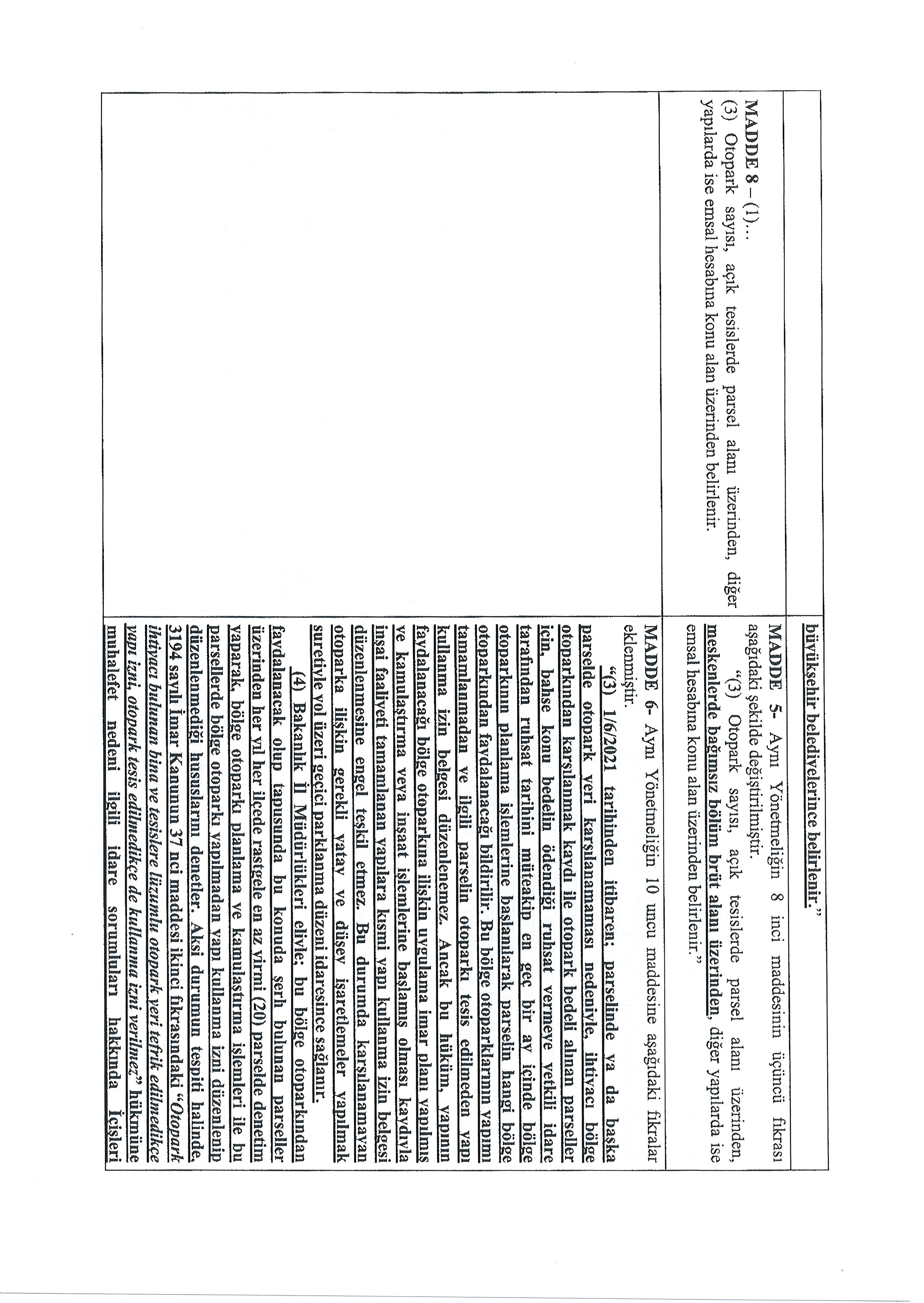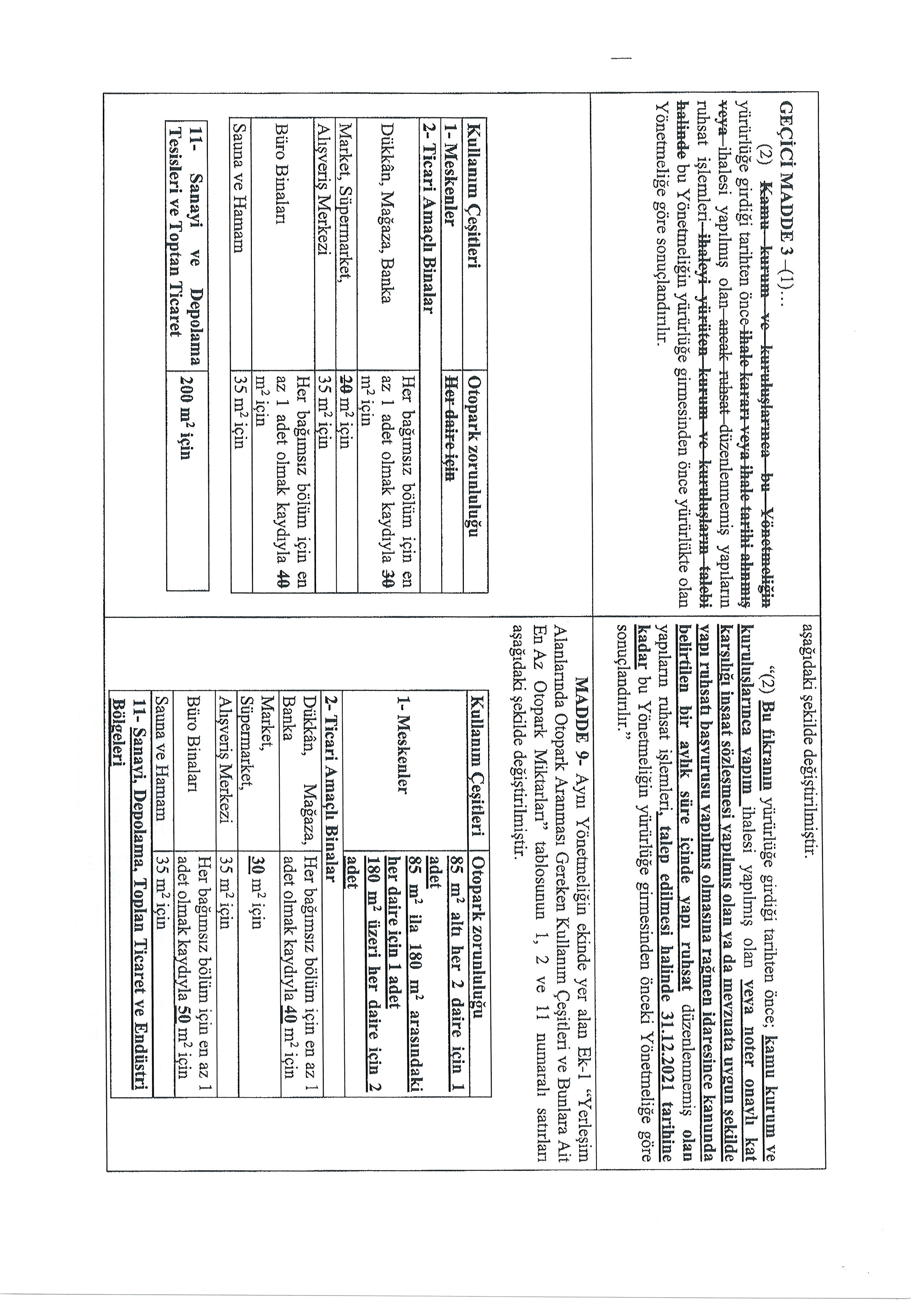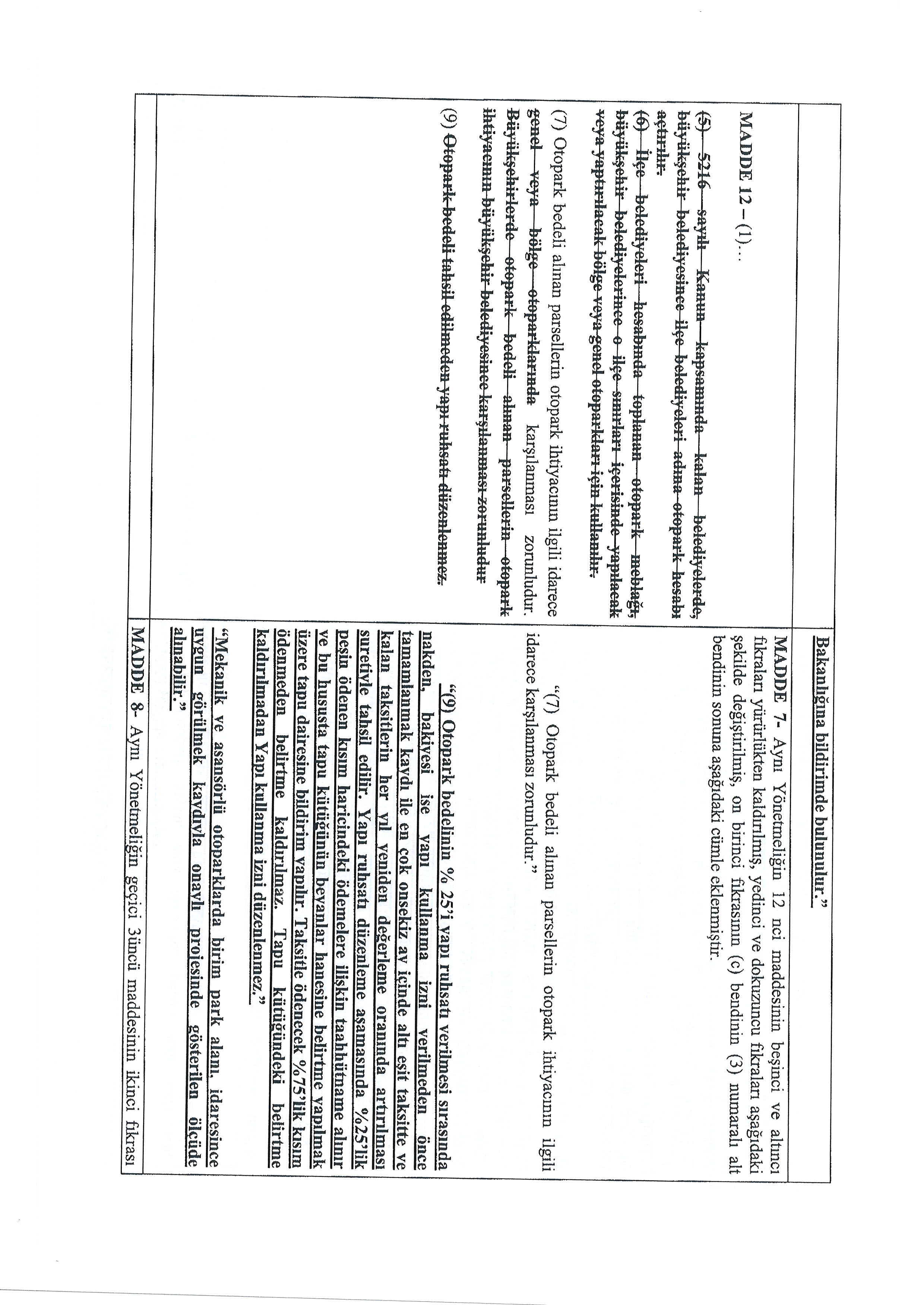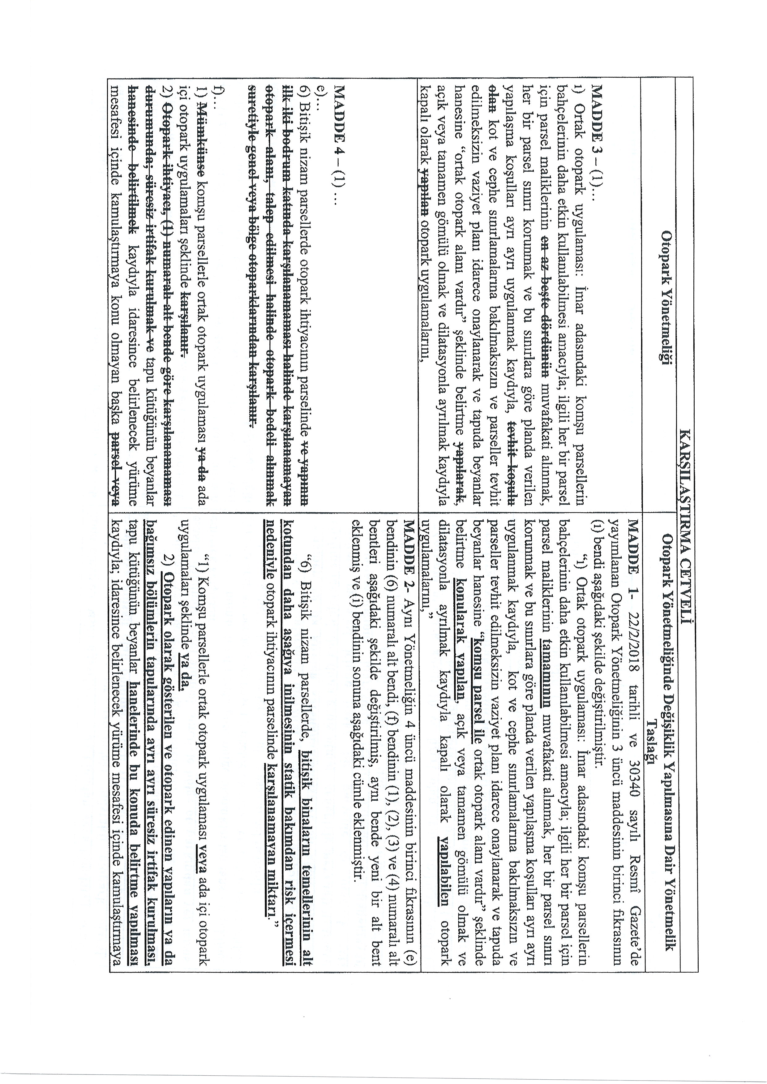 OTOPARK YÖNETMELİĞİNDE DEĞİŞİKLİK YAPILMASINA DAİR YÖNETMELİK TASLAĞI