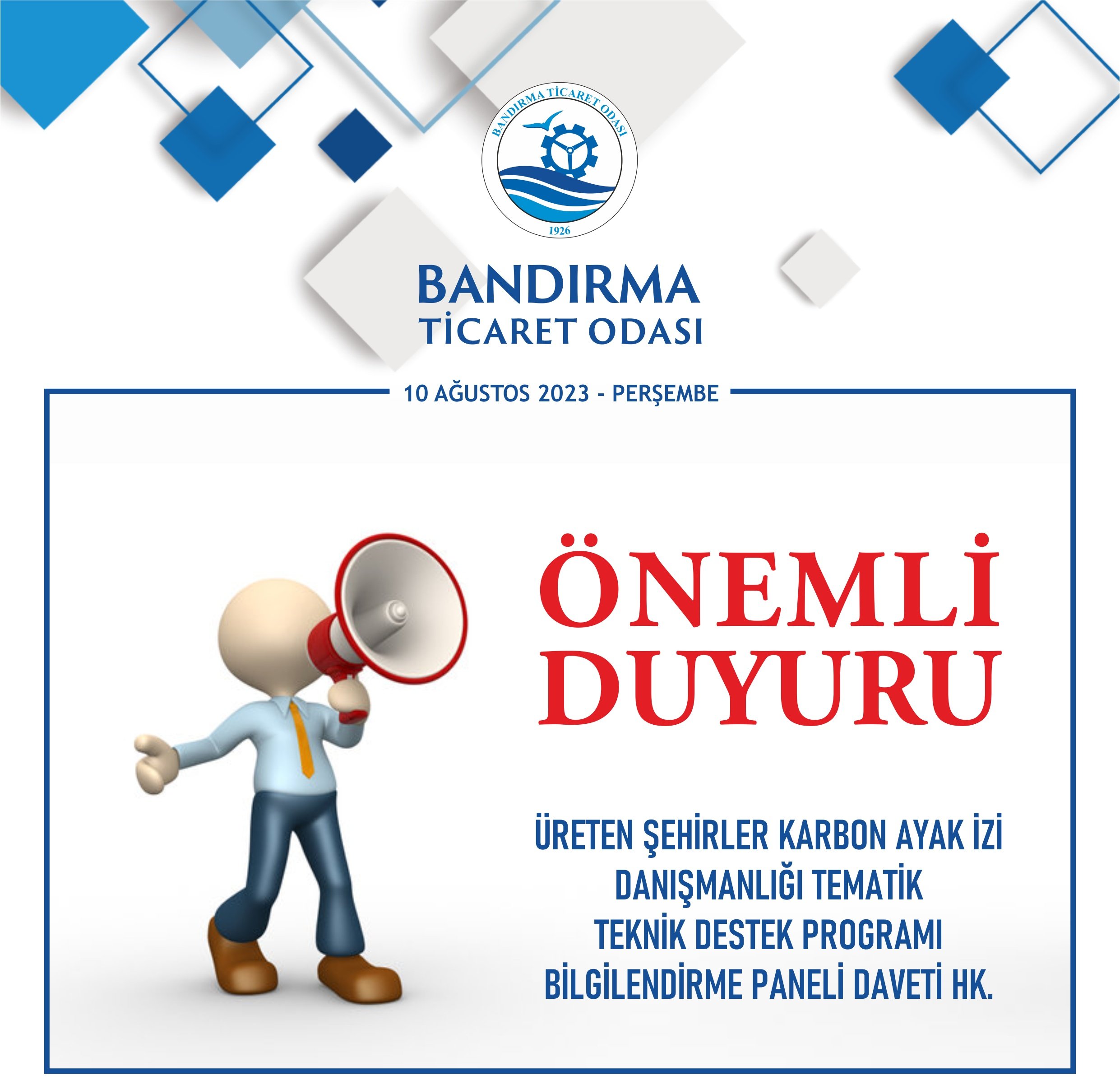 ÜRETEN ŞEHİRLER KARBON AYAK İZİ DANIŞMANLIĞI TEMATİK TEKNİK DESTEK PROGRAMI BİLGİLENDİRME PANELİ DAVETİ HK.