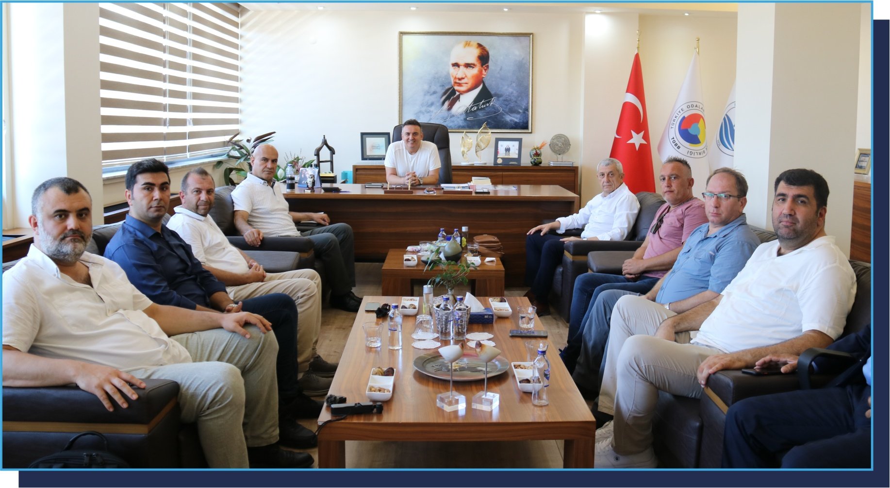 İYİ Parti 28. Dönem Balıkesir Milletvekili Op. Dr. Turhan Çömez, İYİ Parti İlçe Başkanı Necmi Sert ve Yönetim Kurulu Üyeleri Ali Sandık, Engin Can, Osman Atik, Müjdat Gündoğdu ve Bandırma Ticaret Borsası Yönetim Kurulu Üyesi Mustafa Çömez, Odamız Yönetim Kurulu Başkanı Adem Yılmaz, Yönetim Kurulu Üyelerimiz Süleyman Tümay Özbeyli ve Ozan Akdoğan’ı ziyaret etti.