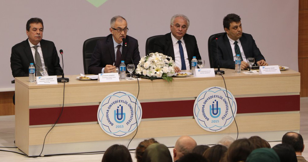 Açılış töreninin ardından Bandırma Onyedi Eylül Üniversitesi Rektör Yardımcısı Prof. Dr. Alpaslan Serel’in moderatörlüğünde Gönen Belediye Başkanı ve Bandırma Organize Sanayi Bölgesi Yönetim Kurulu Başkanı Hüseyin Yakar, Bandırma Ticaret Odası Meclis Başkanı Bahadır Çenberci, Bandırma Ticaret Borsası Meclis Başkanı İsmail Tunçbilek’in katılımı ile ilk panel gerçekleştirildi.