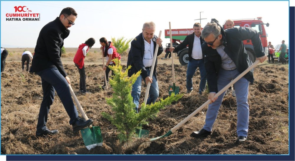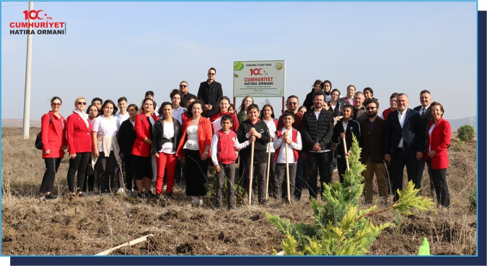 Bandırma Ticaret Odası Genç Girişimciler Kurulu’nun Cumhuriyetin 100. Yılı kutlama etkinlikleri kapsamında “Cumhuriyetin 100. Yılı’na 10.000 Fidan” fikri ile ortaya çıkan 100.Yıl Cumhuriyet Hatıra Ormanı projesi Bandırma Orman İşletme Müdürlüğü’nün tahsis ettiği orman arazisinde temsili 100 adet fidan dikimi ile hayata geçirildi.