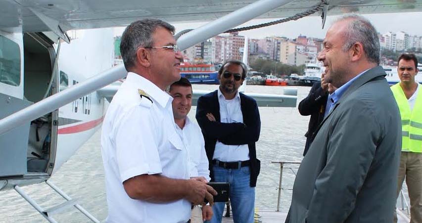 Deniz Uçağının ilk seferinde ilk yolcu olarak hizmetin startını veren Odamız Yönetim Kurulu Başkanı Mehmet Kılkışlı, deniz uçağı seferlerinin bölge halkı için hayırlı olmasını diledi.