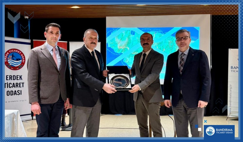 Toplantı sonunda Erdek Kaymakamı Hasan Göç, Kapıdağ Yarımadası ve Erdek turizmine verdikleri desteklerden dolayı AK Parti Balıkesir Milletvekili Ali Taylan Öztaylan ile GMKA Genel Sekreteri Onur Adıyaman’a plaket takdim etti.