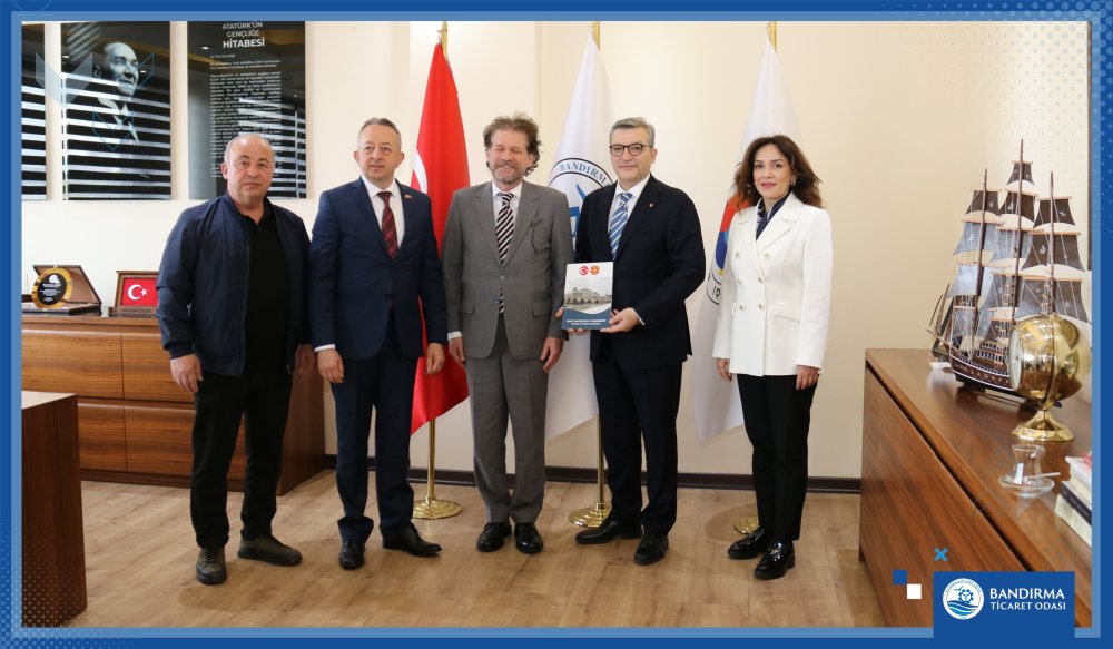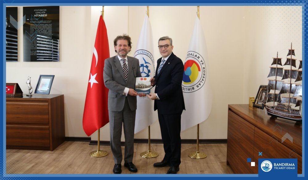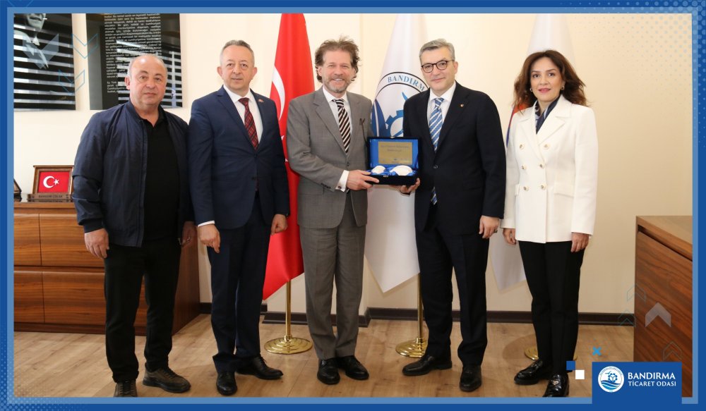 Kuzey Makedonya Ankara Büyükelçisi Sayın Jovan Manasijevski ve Kuzey Makedonya Bursa Fahri Konsolosu Sayın Halil Bedzeti, Odamız Yönetim Kurulu Başkanı Bahadır Çolak ve Meclis Başkanı Funda Seçil Dedeoğlu'nu ziyaret etti.