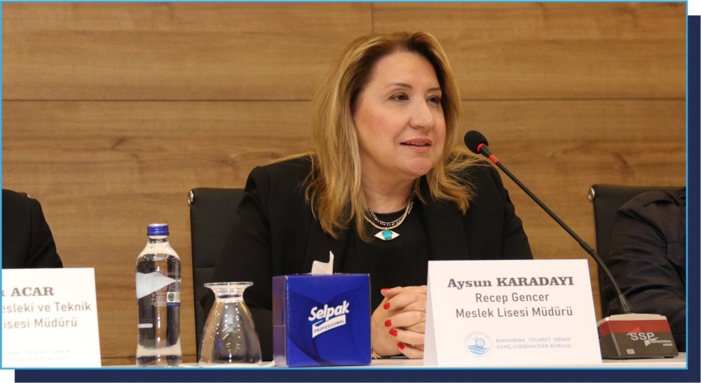Recep Gencer Meslek Lisesi Müdürü Aysun Karadayı ve Bandırma MTAL Müdürü Şefik Açar’ın okulların genel durumu, okullarda bulunan bölümler, meslek liselerin avantajları ile ilgili bilgilendirmeleri ile başlayan seminerde; meslek liselerinin bir ceza değil aksine ödül yeri olduğunu belirten Recep Gencer Meslek Lisesi Müdürü Aysun Karadayı; burada okuyan öğrencilerin üretime katıldığı ve üretmenin verdiği özgüven ile bir adım önde olduğunu belirtti.
