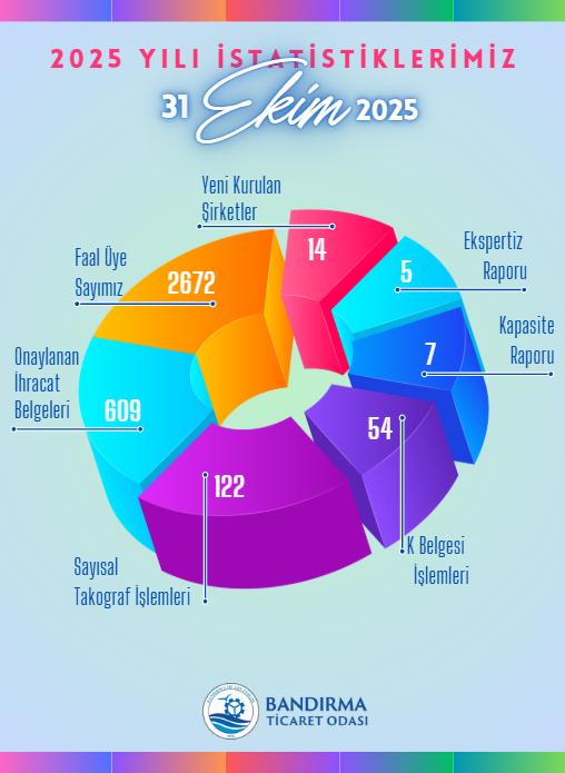 Bandırma’nın ekonomik dinamizmi ve ticaret potansiyelini gözler önüne seren veriler ışığında, büyüyen ve gelişen bir ticaret ortamı için birlikte çalışmaya devam ediyoruz!